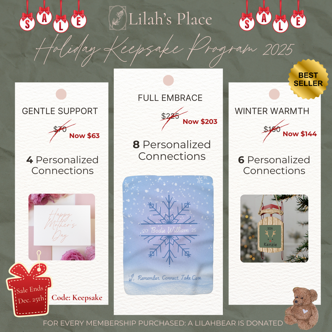 The holidays can be especially difficult after the loss of a Little One. We’re here to support you by sending custom gifts throughout the year, thoughtfully designed to commemorate holidays and special moments. These personalized gift programs, with 3 levels of support to choose from, are carefully designed to provide comfort and a living tribute to honor your Little One's memory.